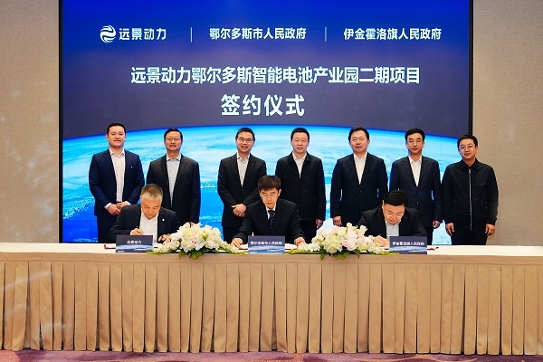 内蒙古鄂尔多斯市人民政府、伊金霍洛旗人民政府与远景动力在上海举行远景动力智能电池产业园鄂尔多斯二期项目签约仪式,二期项目规划产能20GWh。...