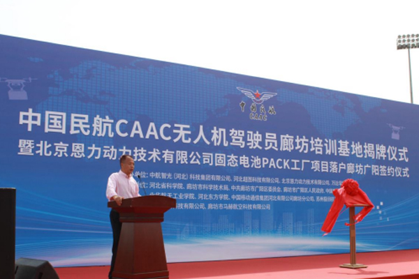 5月16日上午,中国民航CAAC无人机驾驶员廊坊培训基地揭牌仪式暨北京恩力动力技术有限公司固态电池PACK工厂项目落户廊坊广阳签约仪式在河北廊坊万达学院成功举行。...